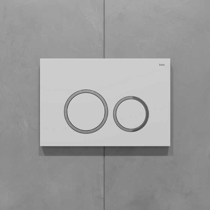 Белая клавиша IDDIS® Unifix составит базовый комплект с подвесной сантехникой – изделие совместимо со всеми моделями инсталляций IDDIS®. Хромированный контур круглых кнопок выступает ярким акцентом, превращая функциональный продукт в стильный аксессуар. Плоская и эстетичная клавиша смыва займет пространство размером не более ежедневника (24,5 на 16,5 см). Она легко монтируется и снимается для удобного доступа к крану открытия-закрытия воды и обслуживания арматуры. Модель доступна в нескольких цветовых сочетаниях.