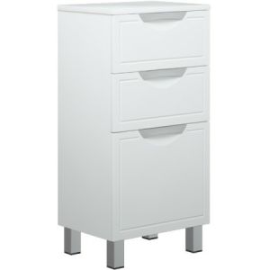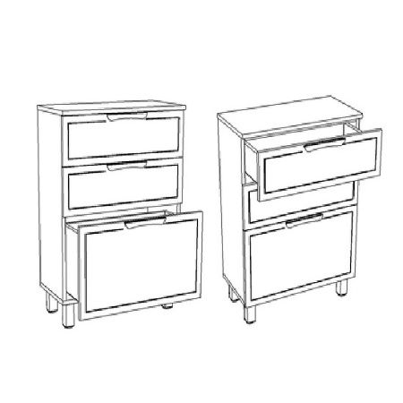 У комода "Монро 50 Z3" 3 выдвижных ящика. Высота верхних двух ящиков - 110 мм, нижнего - 250 мм. У комода 4 металлические опоры. Крышка и фасады - МДФ в плёнке.