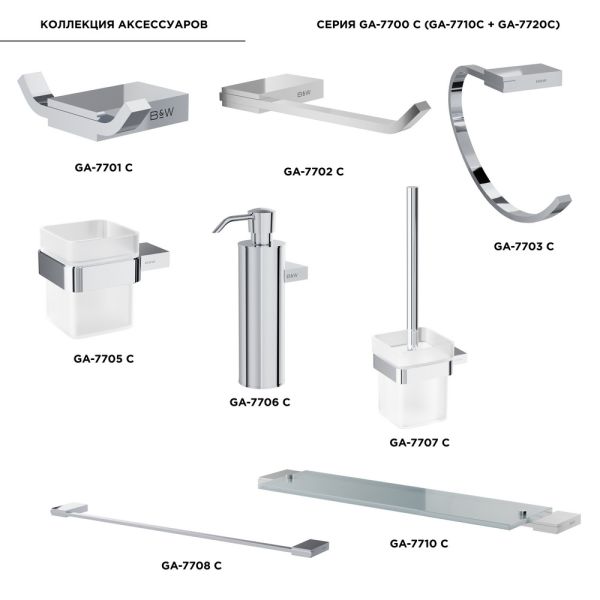Комплект аксессуаров для ванной комнаты Black and White 7720C хромДля тех, кто любит четкие четкость, структурированность и правильную геометрию. Прямые углы и незатейливые изгибы, чтобы было стильно и изысканно. Вечная классика с элементами новейших тенденций. Коллекция выполнена из надежных материалов: латунь и закаленное стекло, именно это позволяет не беспокоиться о надежности и увеличенном сроке службы каждого изделия. Соберите полную коллекцию из двух наборов, чтобы не думать о том, чего же еще не хватает.