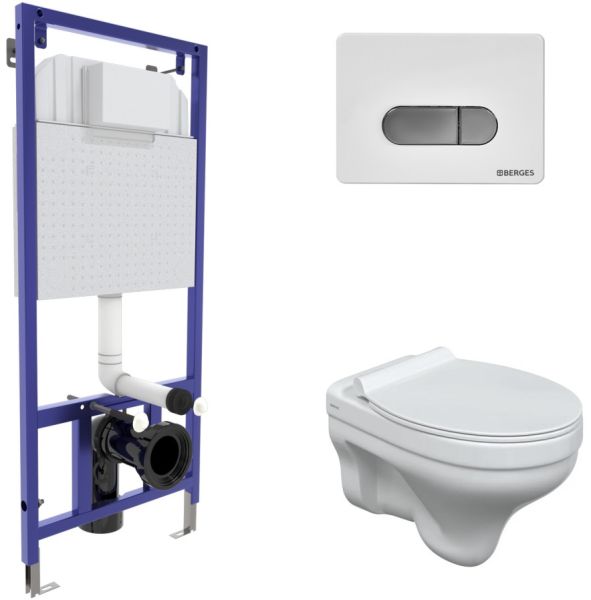 Комплект Berges 4в1 042441: инсталляция NOVUM кнопка D7 белая/хром глянец унитаз Albit S сиденье Top Slim SO купить