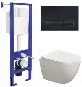 Комплект Berges 4в1 042445: инсталляция ATOM Line 410 кнопка SoftTouch чёрная унитаз Okus сиденье Okus Slim SO