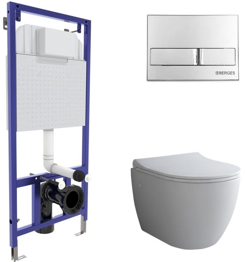 Комплект Berges 4в1 043205: инсталляция NOVUM525 кнопка L3 хром глянец унитаз Okus сиденье Toma Slim SO купить
