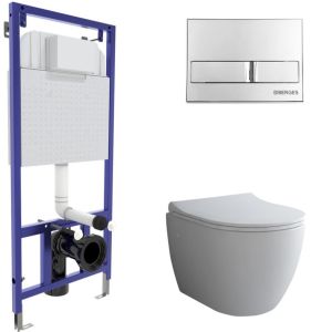 Комплект Berges 4в1 043205: инсталляция NOVUM525 кнопка L3 хром глянец унитаз Okus сиденье Toma Slim SO