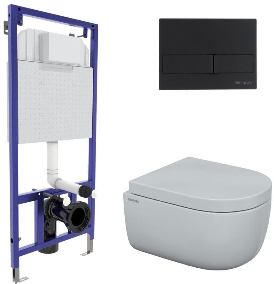 Комплект Berges 4в1 043232: инсталляция NOVUM525 кнопка L5 SoftTouch чёрная унитаз EGO Rimless сиденье Toma SO купить