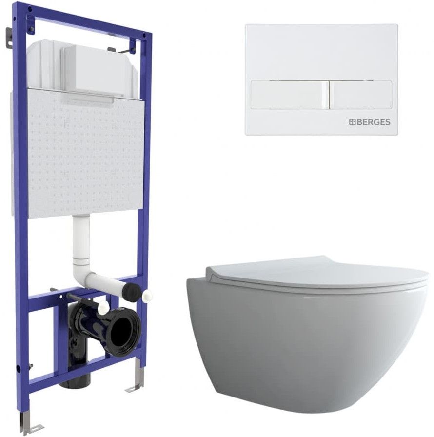 Комплект Berges 4в1 043271: инсталляция NOVUM525 кнопка L1 белая унитаз Puma Rimless сиденье Toma Slim SO