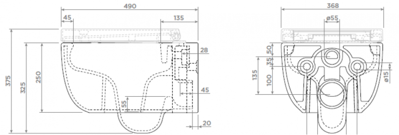 Полный комплект BERGES для монтажа подвесного унитаза. 1. Инсталляция NOVUM525Толщина бачка 80 мм.Межосевое расстояние под крепежные шпильки унитаза 18 и 23 см.Резервуар воды объемом 10 литров с тепло-шумоизоляцией.Уровень шума при давлении 3 бар не превышает 13 дБ.Подвод воды сверху (G1/2 наружная).Объем смыва 3/6 литра с возможностью регулировки. Металлический каркас, окрашенный антикоррозийной эмалью, расчетная нагрузка до 400 кг.Ножки регулировки высоты из оцинкованной стали. Возможность установки в угол. 2. кнопка L3 хром глянецABS-пластик 3. унитаз EGO Rimless,безободковая система смыва, антибактериальное покрытиеэкономия воды, скрытый крепеж 4. сиденье дюропласт Toma Slim SOмикролифт, быстросъем. Все крепежи для установки в комплекте