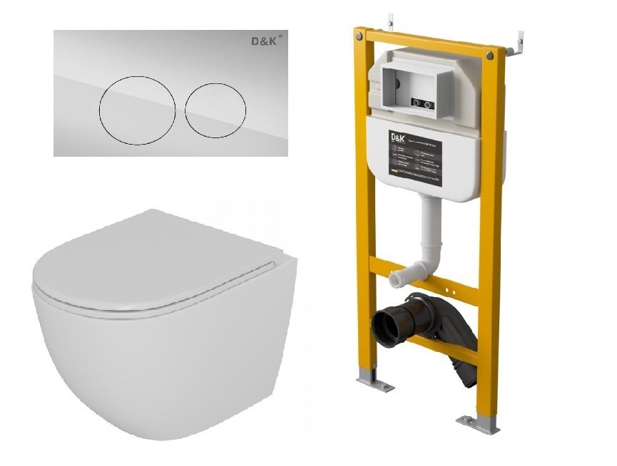 Комплект Унитаз подвесной безободковый DQ Matrix DT1396016+Инсталляция рамная скрытого монтажа DQ DI8050127, 500*117*1270мм, для подвесного унитаза+Клавиша смыва DQ Bayern DB1529001.2, хром