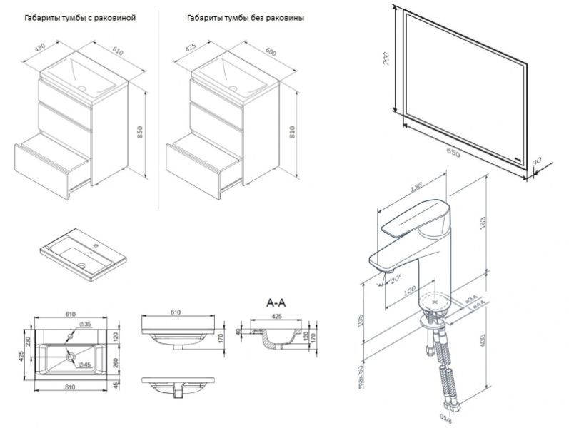 Комплект мебели для ванной AM.PM Gem S 60 BK91GC.Характеристики:Тумба под раковину с тремя выдвижными ящиками и двумя хромированными ножками.