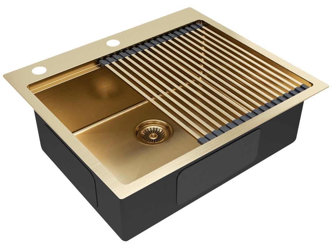 Комплект Paulmark: мойка Brim-Pro 60 и ролл-мат Pro PM705951-BG+R405-BG брашированное золото