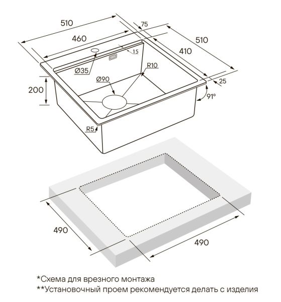 встраиваемая сверху