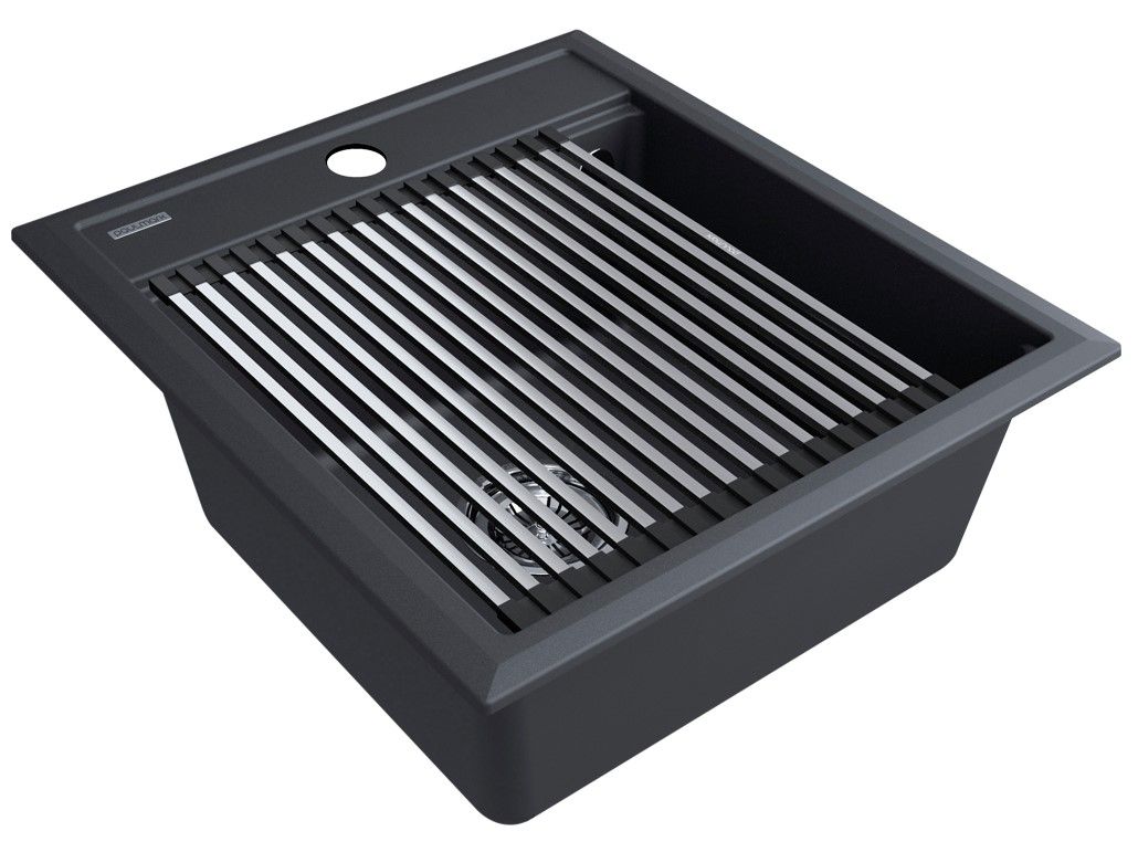 Комплект Paulmark: мойка Stepia 45 и ролл-мат Step PM114651-BLM+R375-BS чёрный металлик/брашированная нержавеющая сталь купить