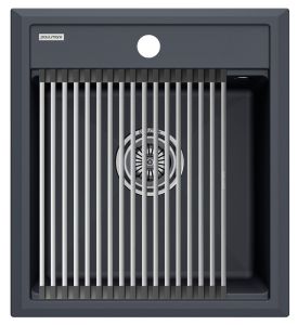 Комплект мойка STEPIA 45 + ролл-мат STEP, PM114651-BLM+R375-BS Стильный и многофункциональный комплект мойки из композитного материала на основе гранита и ролл-мата из высококачественной нержавеющей стали для создания комфортной рабочей зоны на вашей кухне.Мойка STEPIA 45 изготовлена из IT-GRANIT – композитного материала на основе гранита, благодаря чему мойка не потеряет свой первоначальный цвет за многие годы использования даже при длительном воздействии солнечных лучей. Материал мойки устойчив к сколам, царапинам и деформациям. На горизонтальных гранях чаши мойки предусмотрены специальные выступы-ступеньки, которые позволяют использовать такие аксессуары, как ролл-маты, доски, коландеры и пр. для создания дополнительной рабочей поверхности на кухне. Дно чаши мойки имеет 4 грани, направленных к сливу под индивидуальным градусом для максимально быстрого ухода воды.