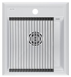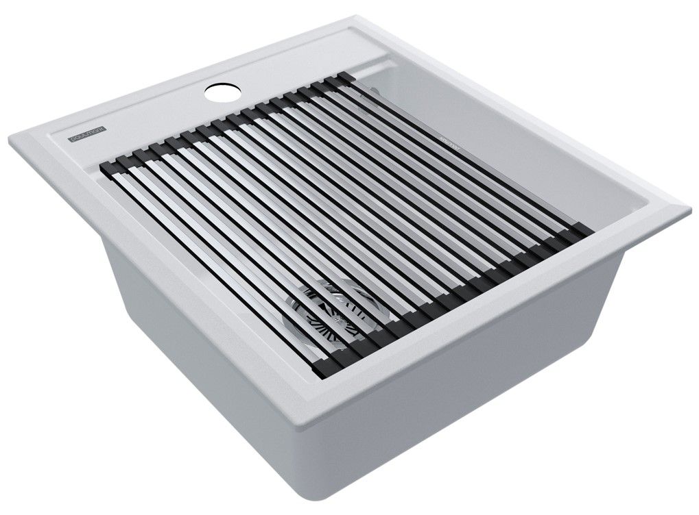 Комплект мойка STEPIA 45 + ролл-мат STEP, PM114651-WH+R375-BSСтильный и многофункциональный комплект мойки из композитного материала на основе гранита и ролл-мата из высококачественной нержавеющей стали для создания комфортной рабочей зоны на вашей кухне.Мойка STEPIA 45 изготовлена из IT-GRANIT – композитного материала на основе гранита, благодаря чему мойка не потеряет свой первоначальный цвет за многие годы использования даже при длительном воздействии солнечных лучей. Материал мойки устойчив к сколам, царапинам и деформациям. На горизонтальных гранях чаши мойки предусмотрены специальные выступы-ступеньки, которые позволяют использовать такие аксессуары, как ролл-маты, доски, коландеры и пр. для создания дополнительной рабочей поверхности на кухне. Дно чаши мойки имеет 4 грани, направленных к сливу под индивидуальным градусом для максимально быстрого ухода воды.