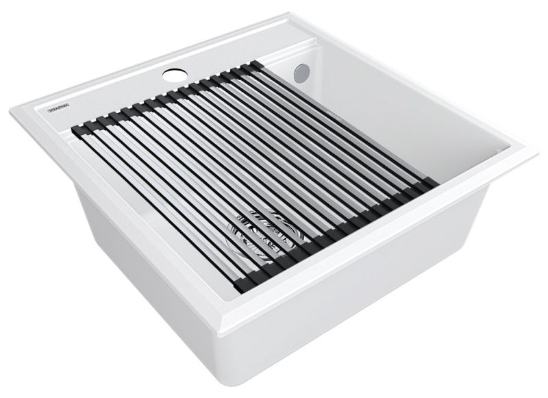 Комплект мойка STEPIA 50 + ролл-мат STEP, PM115051-WH+R375-BSСтильный и многофункциональный комплект мойки из композитного материала на основе гранита и ролл-мата из высококачественной нержавеющей стали для создания комфортной рабочей зоны на вашей кухне.Мойка STEPIA 50 изготовлена из IT-GRANIT – композитного материала на основе гранита, благодаря чему мойка не потеряет свой первоначальный цвет за многие годы использования даже при длительном воздействии солнечных лучей. Материал мойки устойчив к сколам, царапинам и деформациям. На горизонтальных гранях чаши мойки предусмотрены специальные выступы-ступеньки, которые позволяют использовать такие аксессуары, как ролл-маты, доски, коландеры и пр. для создания дополнительной рабочей поверхности на кухне. Дно чаши мойки имеет 4 грани, направленных к сливу под индивидуальным градусом для максимально быстрого ухода воды.