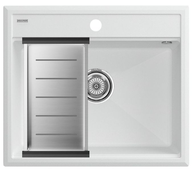 Комплект Paulmark: мойка Stepia 60 и коландер Advance PM115951-WH+A375-BS белый/брашированная нержавеющая сталь купить