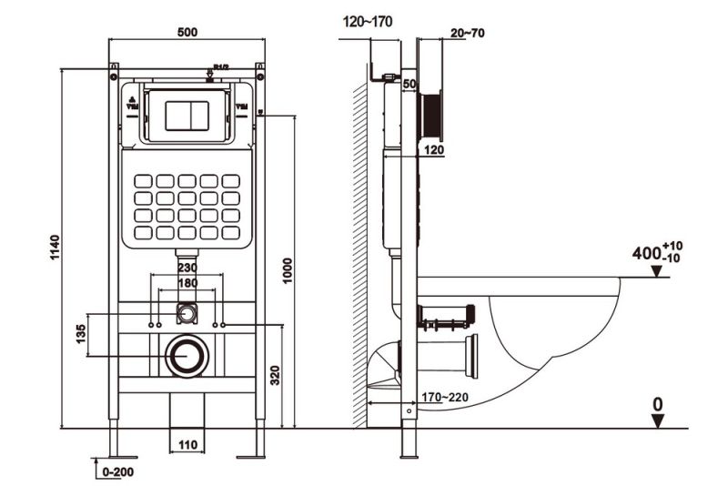 Комплект подвесной унитаз ABBER Bequem AC1100T белый с инсталляцией AC0105 и кнопкой AC0120NG никель
