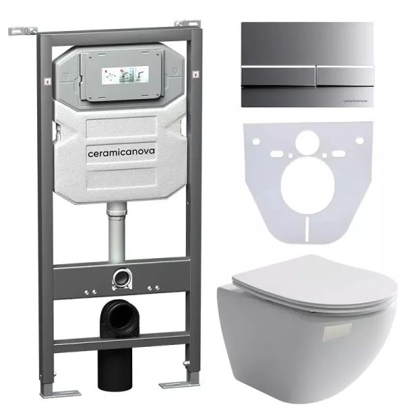 Комплект с инсталляцией Ceramica Nova CN4002_1002M_1000 унитаз Metropol CN4002 крышка-сиденье с микролифтом и инсталляция Envision CN1002M с кнопкой смыва хром матовый Flat купить