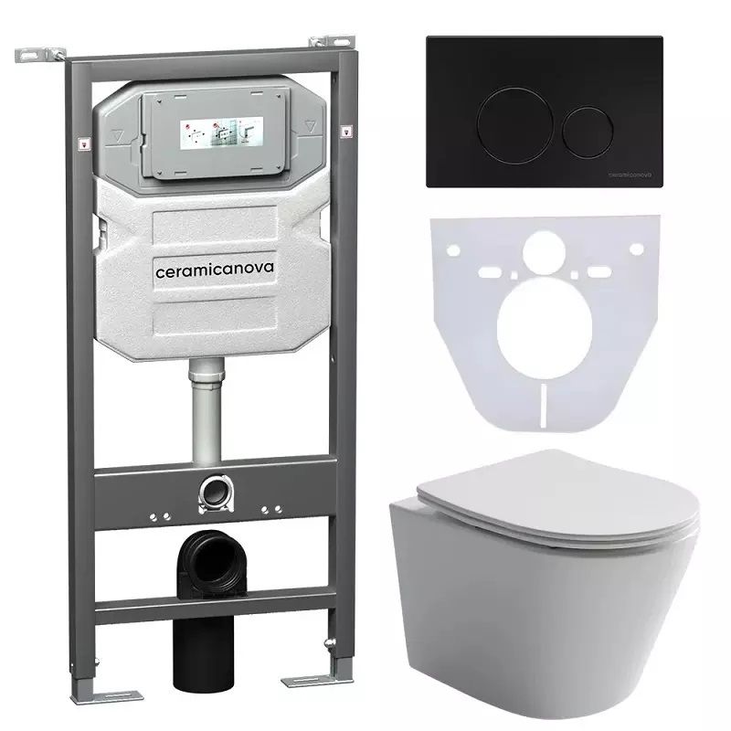 Комплект с инсталляцией Ceramica Nova CN6000_1001B_1000 унитаз Balearica CN6000 крышка-сиденье с микролифтом и инсталляция Envision CN1001B с чёрной матовой кнопкой смыва Round