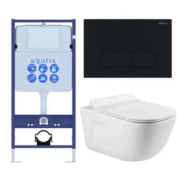 Комплект SET AQUATEK ДИВА-017 4в1 унитаз с инсталляцией кнопкой и сиденьем микролифт купить