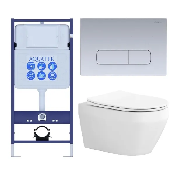 Комплект SET AQUATEK ЛЕЯ cm-014 4в1 унитаз с инсталляцией кнопкой и сиденьем микролифт купить