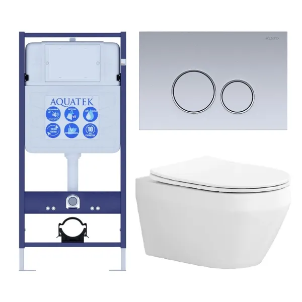 Комплект SET AQUATEK ЛЕЯ cm-019 4в1 унитаз с инсталляцией кнопкой и сиденьем микролифт купить