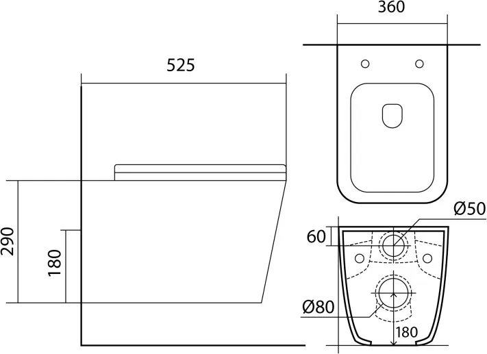 - Чаша унитаза безободковая