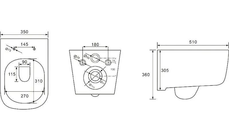 - Чаша унитаза безободковая