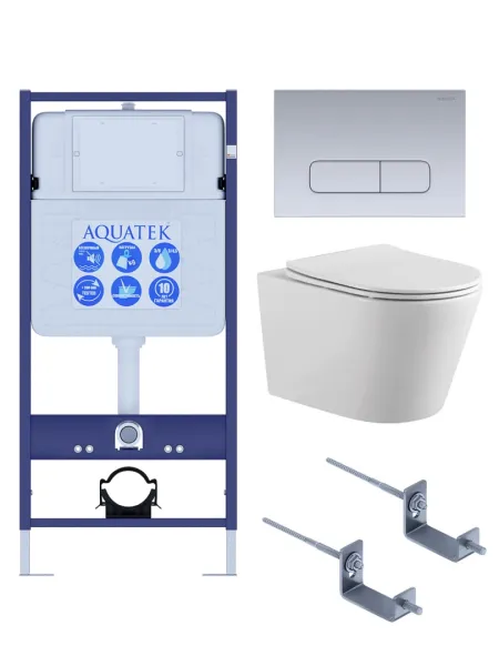 Комплект SET AQUATEK ВЕГА-1905-014 унитаз с инсталляцией кнопкой и сиденьем микролифт купить