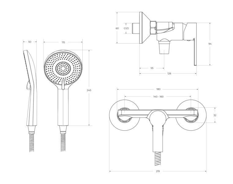 Душевой шланг, душевая лейка, держатель для душа, крепления, аэратор