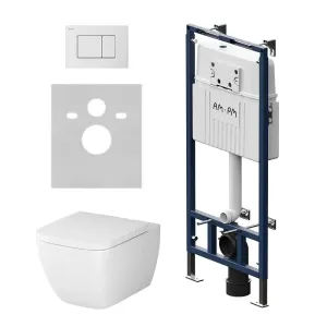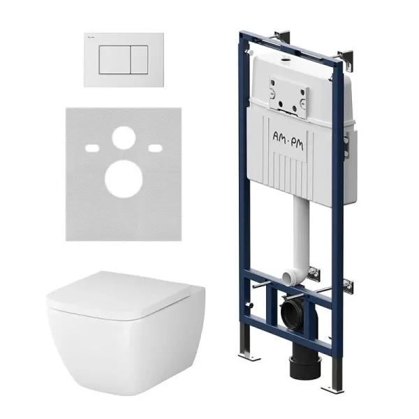 Комплект унитаза с инсталляцией AM.PM Gem IS100201.901701 сиденье микролифтПолностью готовый к установке комплект: система инсталляции с клавишей подвесной унитаз с сиденьем включающий все необходимые крепления патрубки звукоизолирующую прокладку. Экономия пространства благодаря узкому бачку – 120 мм глубиной. Заливной клапан с низким уровнем шума - Класс II согласно европейского стандарта EN 14124. Функция SetUp : Гибкая система крепежа – универсальность и эффективность установочного процесса. Гибко обходит вертикальные и горизонтальные трубы. Высокая прочность и износостойкость. Выдерживает нагрузку до 400 кг. Подходит для унитазов любых размеров. Армированный шланг подачи воды двойная прокладка слива и подачи воды. В комплекте механическая двухрежимная клавиша из ABS пластика в цвете белый глянцевый. Подключение воды сзади сверху. Современный дизайн и трендовая квадратная форма чаши унитаза Gem Flashclean созданные в собственной студии AM.PM Design. FlashClean - новое поколение безободковых унитазов без использования пластика: 100% гигиеничности 0% брызг. Безупречная поверхность: изготовлен из стекловидного фарфора самого гигиеничного и влагостойкого материала. Компактное дизайнерское решение: идеально впишется в санузел любого размера благодаря проекции 50 см. В комплекте быстросъемное сиденье из дюропласта с механизмом плавного закрывания. Материал сиденья дюропласт устойчивый к появлению царапин в сочетании с креплениями из нержавеющей гарантируют долговечность сиденья. Актуальный дизайн сиденья slim wrap-over с однокнопочным механизмом быстрого снятия.