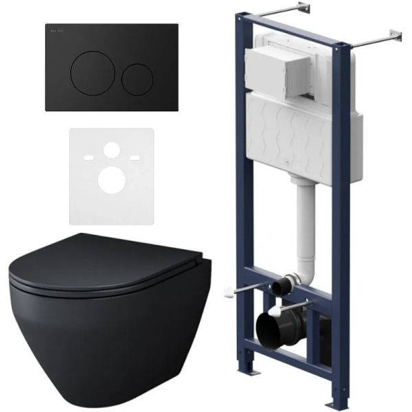 Комплект унитаза с инсталляцией AM.PM Spirit V2.0 FlashClean IS49038.701700MB с сиденьем Микролифт и Черной матовой клавишей смыва