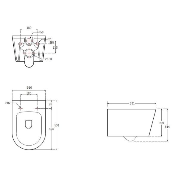 • Объем смывного бачка 6 л. Толщина бачка 10 см