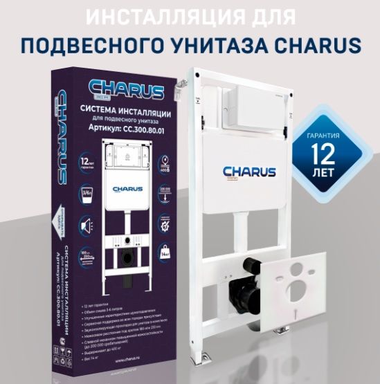 Комплект унитаза с инсталляцией CHARUS SET.125W.21.1 клавишей смыва хром купить