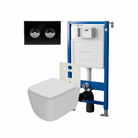 Комплект унитаза с инсталляцией Point Элемент PN48312BC с сиденьем МикролифтСет: Система инсталляции пневматическая Point Элемент П для подвесного унитаза PN45121 + Клавиша смыва для пневматической инсталляции Point Венера, установка в стену, черный/хром, PN44072BC + Унитаз подвесной Point Меркурий безободковый, сиденье дюропласт микролифт, быстросъем, белый матовый PN41831WM