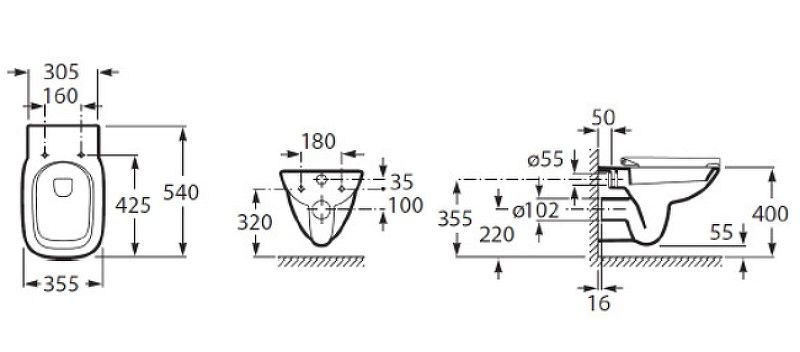 Инсталляция:Габариты: (ШхВxГ): 547x1125х15 мм.