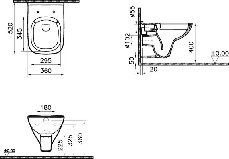 Комплект VitrA S20 9004B003-7207 Унитаз подвесной безободковый, с микролифтом + Система инсталляция + Кнопка смыва купить