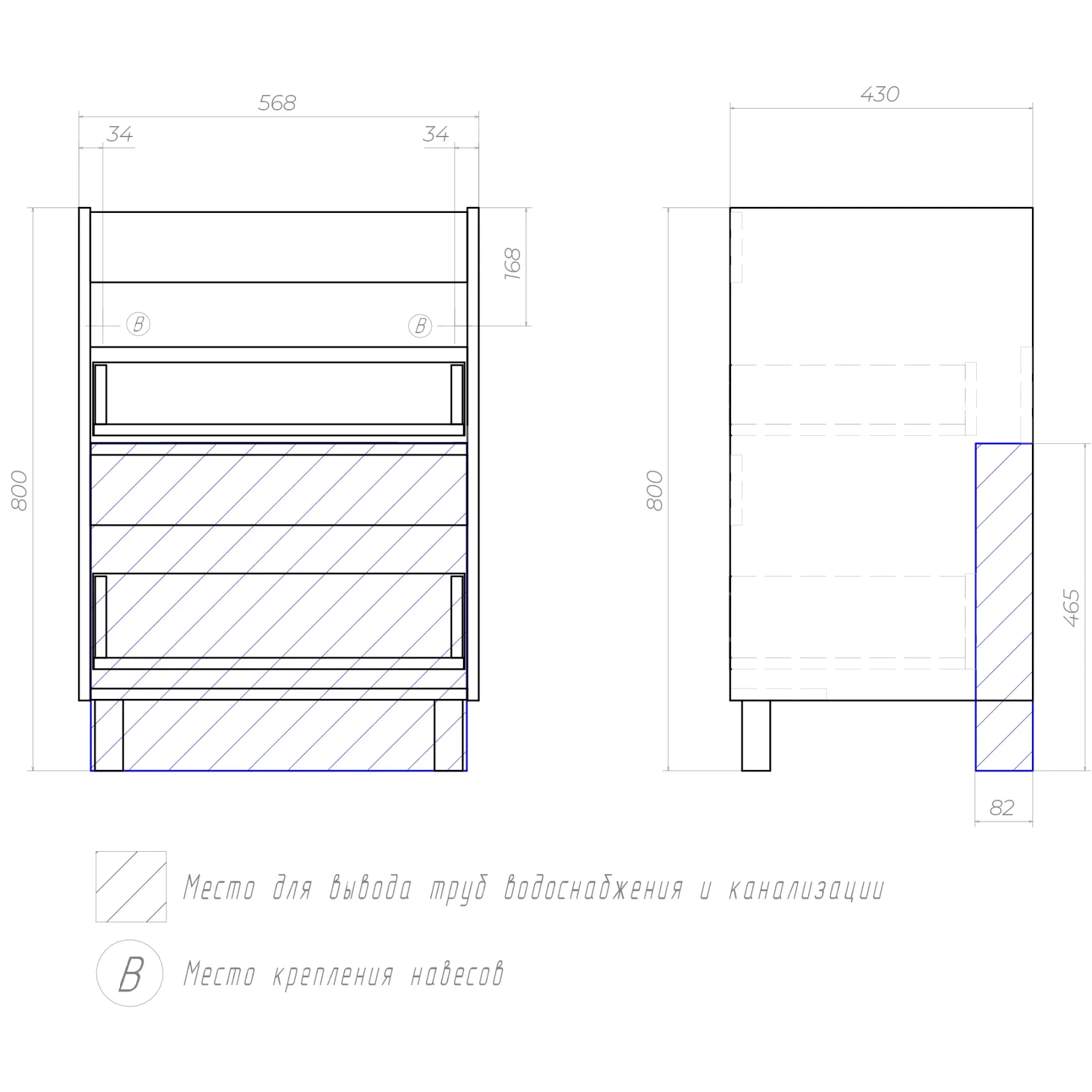 Корпус тумбы под раковину 265 Neo, Glem, Finlay, Cross 600-0-2 (Como)