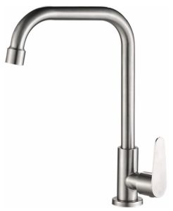 Кран на одну воду бренда Haiba.Изготовлен из нержавеющей стали.Картридж 35 мм.Укомплектован аэратором.Гибкая подводка 40 см.С поворотным изливом.