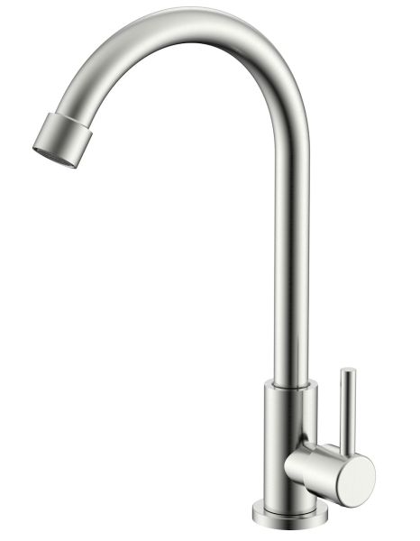 Кран для одного типа воды Splenka S249.481.05. Материал: нержавеющая сталь. Управление: однорычажное. Механизм: керамическая кран-букса. Излив: поворотный. Стандарт подводки: G 1/2. Тип подводки: гибкая. Аэратор. Монтаж: на мойку.