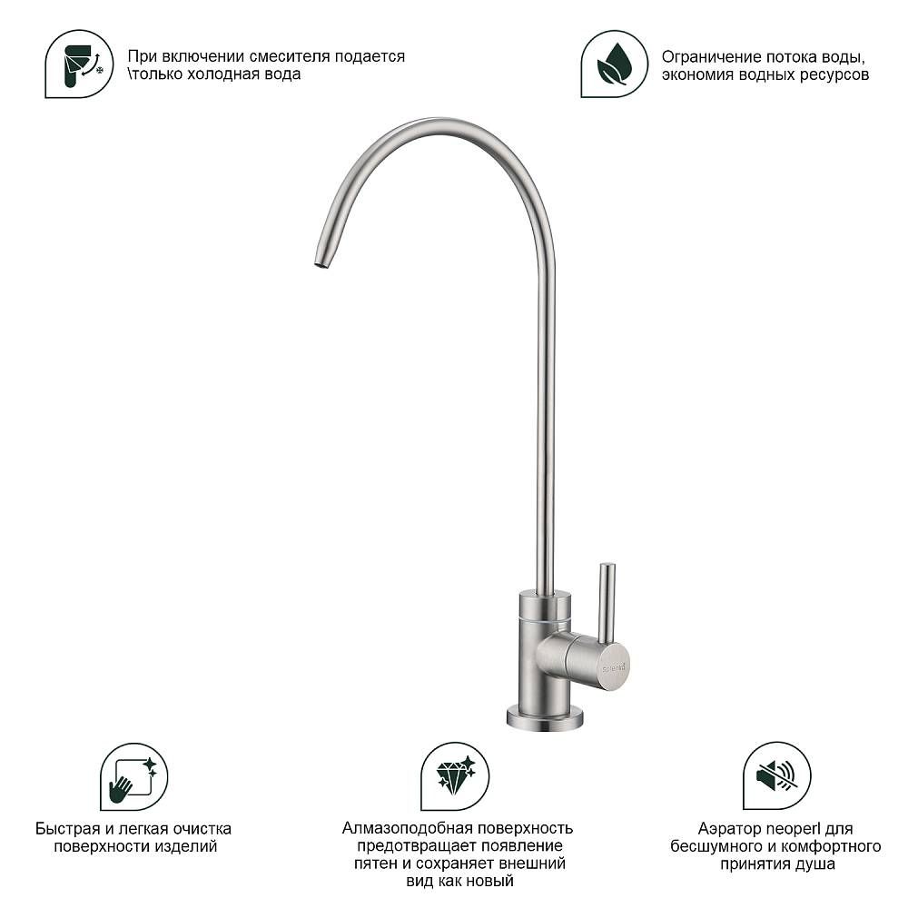 Кран на одну воду Splenka S249.60.05 с подключением фильтра питьевой воды сатин купить