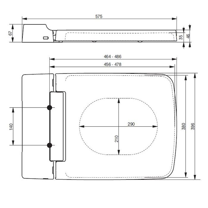 Сиденье 390x582x67мм, для унитаза CW512YR, цвет: белый
