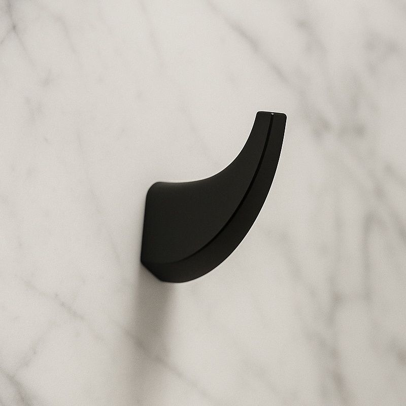 Крючок с черной матовой поверхностью сочетает прочность и стиль. Сплав ZAMAK + SUS-201 обеспечивает долговечность, антиследовое покрытие защищает от потертостей. Выдерживает до 5 кг вертикальной нагрузки, легкий монтаж с комплектом крепежа.