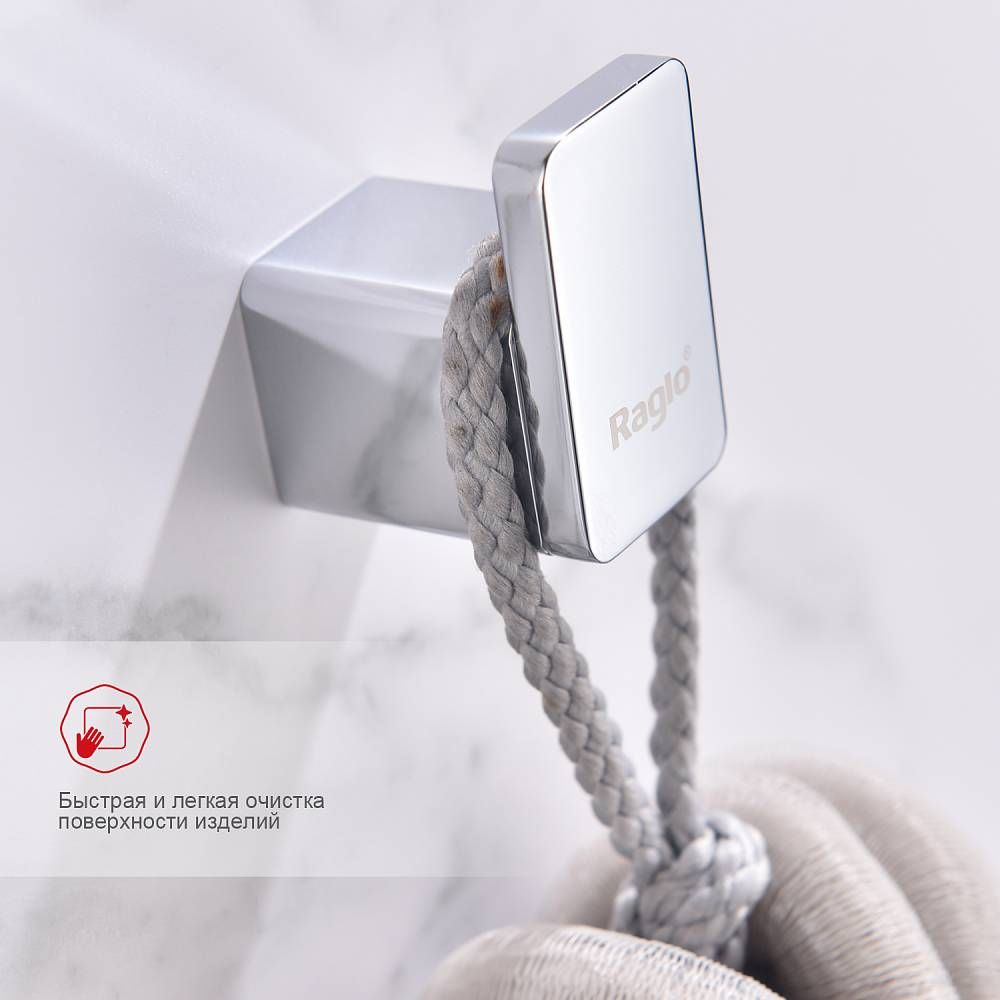 Raglo R301.05 Держатель полотенец в ванную, крючок. Изделие предназначено для хранения полотенец и банных халатов в ванной комнате. Форма квадратная. Крепление в комплекте.