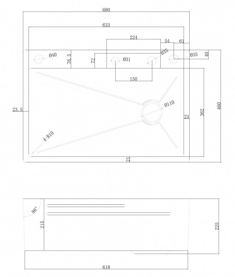 • Отверстия под смеситель: