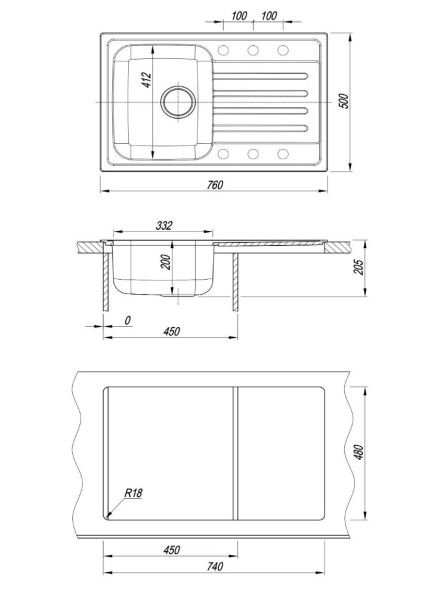 • Отверстия под смеситель:
