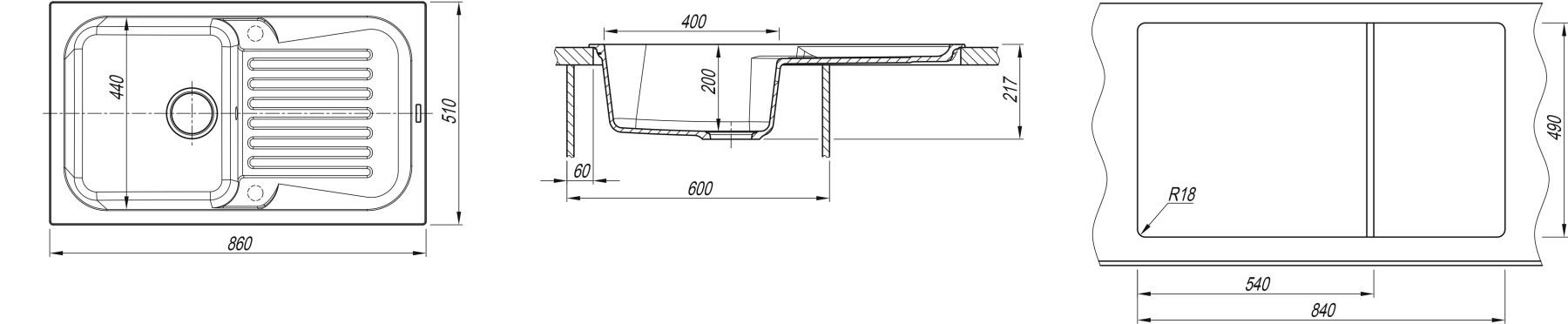 • Отверстия под смеситель:
