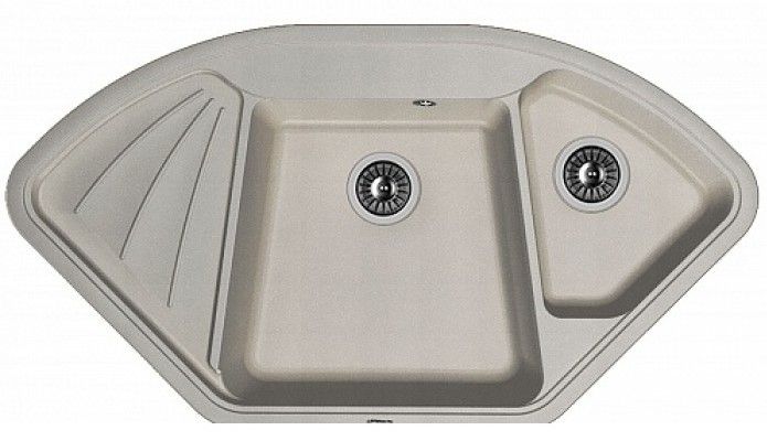 Угловая врезная мойка с двумя чашами для кухни Florentina Капри изготовлена из композитного материала.