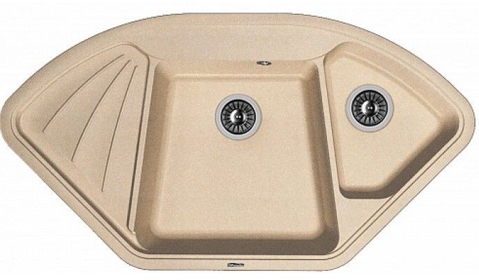 Угловая врезная мойка с двумя чашами для кухни Florentina Капри изготовлена из композитного материала.
