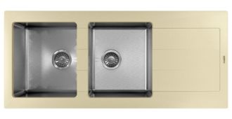 Врезная комбинированная мойка Florentina Комби 1160 сделана из искусственного камня и нержавеющей стали толщиной металла 1 мм.