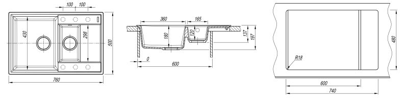 - Практичная мойка с дополнительной малой чашей